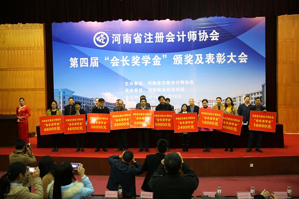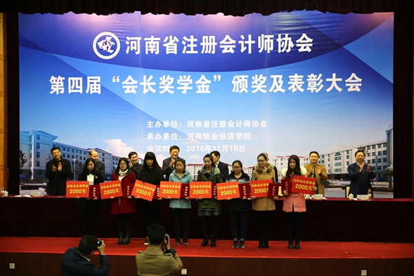 11月18日下午,河南省注册会计师协会第四届“会长奖学金”颁奖表彰大会在威尼斯官网英才校区隆重举行。河南省财政厅副厅长赵学东,1066vip威尼斯副校长许圣道,以及省注册会计师协会有关领导出席会议,26所获奖学生学校领导和老师共同参加此次会议。